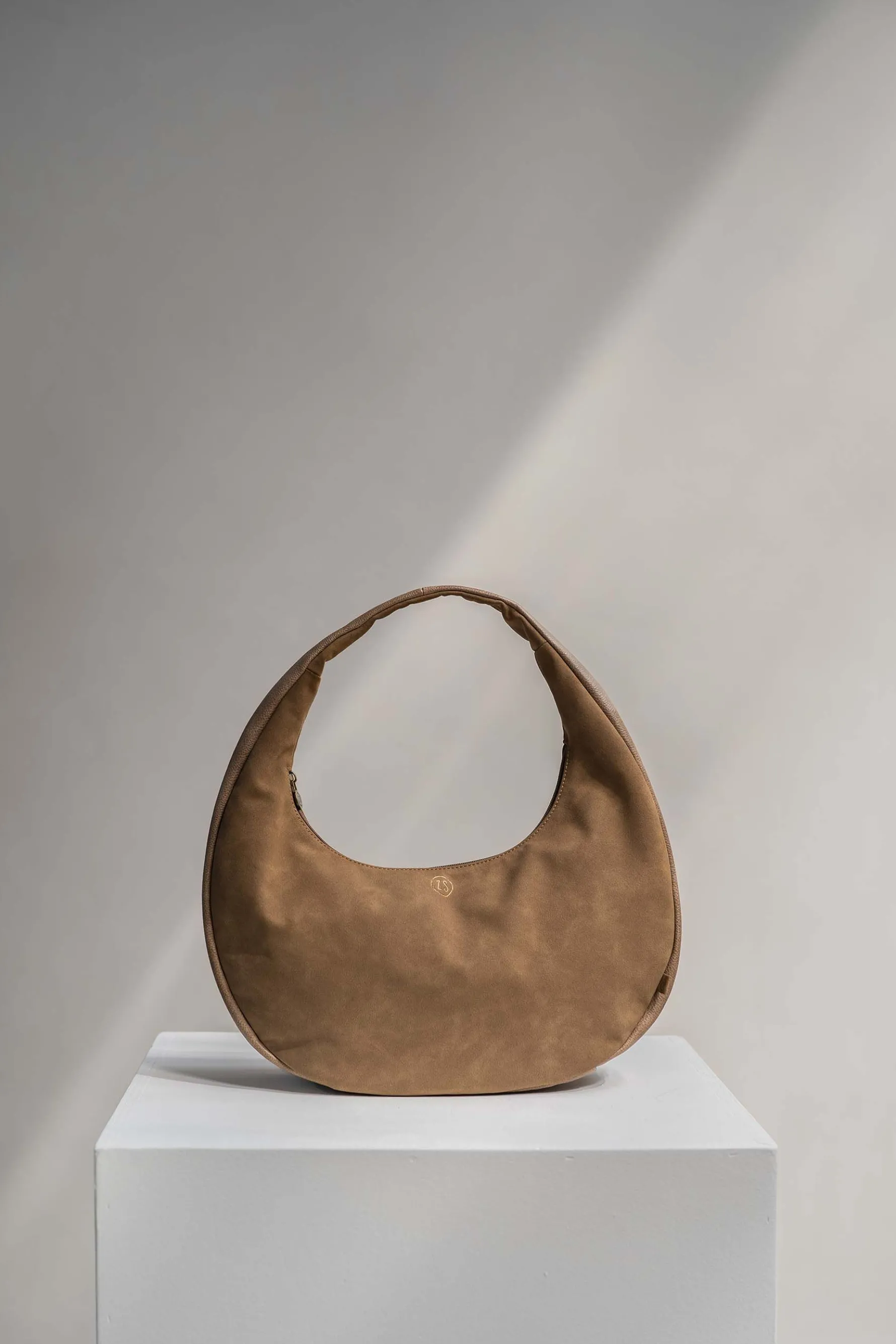 Halve maantas bruin van Zusss|Deze unieke halve maantas van Zusss is een echte musthave. De fijne bruingekleurde tas is 47x41x11 centimeter groot. Een fijn formaat om al je belangrijke items mee te kunnen nemen. Door de halve maan vorm is deze tas echt een eye-catcher. De tas sluit met een ritssluiting. Het Zusss logo vind je terug op het muntje aan de ritssluiting. Ook vind je het Zusss logo terug op het labeltje aan de zijkant. Deze bruine tas is gemaakt van PU leer. Neem ook een kijkje bij de andere Zusss tassen.|Zusss: basic, stoer, uniek en een tikkeltje eigenwijs.