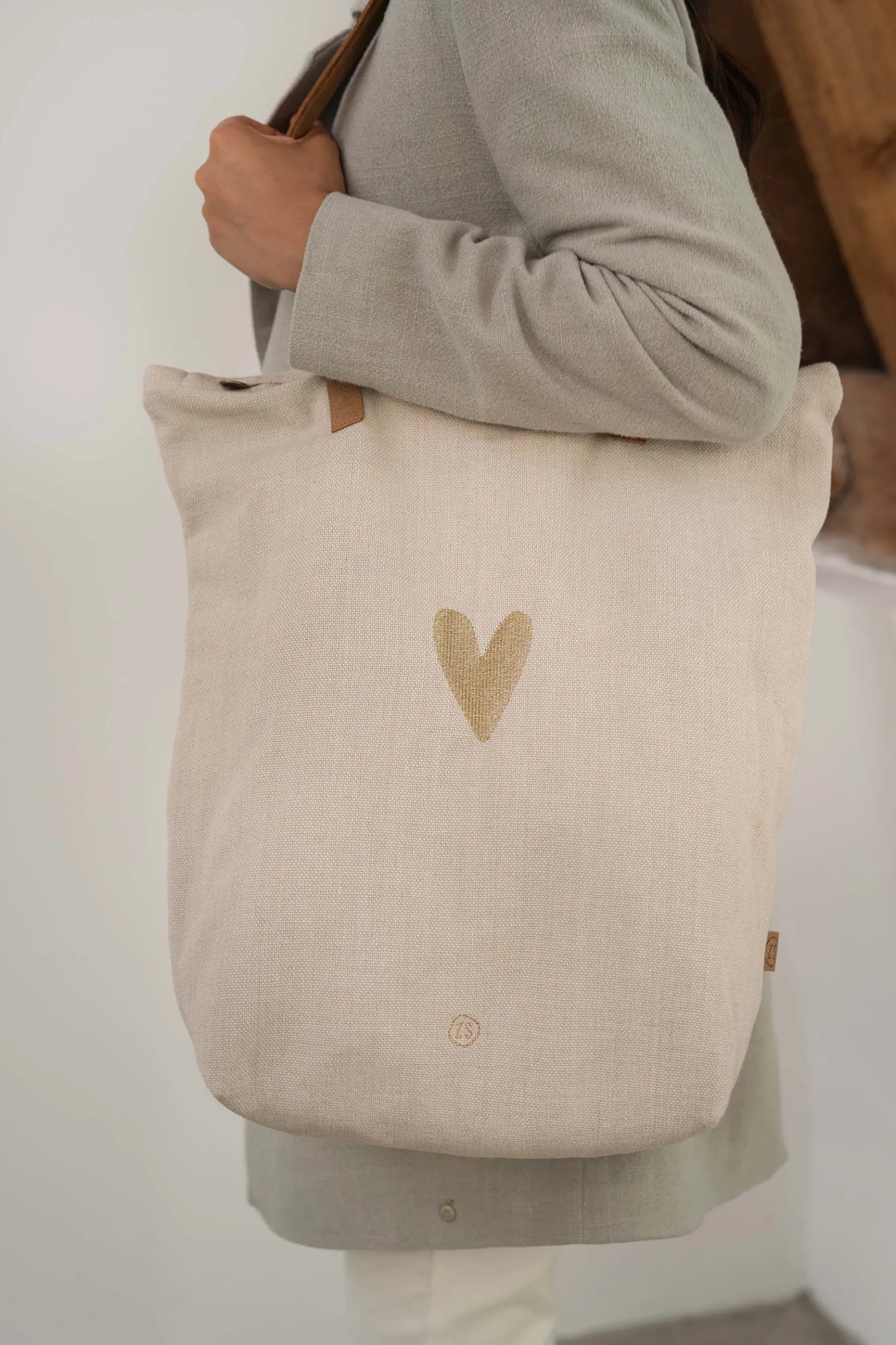 Zusss katoenen boodschappentas hartje|Deze zandkleurige katoenen boodschappentas van Zusss is een tas vol liefde. Het goudkleurige geborduurde hartje op de voorkant is een mooi detail. De grove stof en opgestike hengsels geven ‘m een lekker nonchalante uitstraling. Deze fijne tas is gemaakt van 100% katoen en 44x42x14 centimeter groot. De tas heeft ook een ritssluiting. Ideaal voor je boodschappen of dagje uit! Neem ook eens een kijkje bij de Zusss portemonnees! |Zusss: basic, stoer, uniek en een tikkeltje eigenwijs.