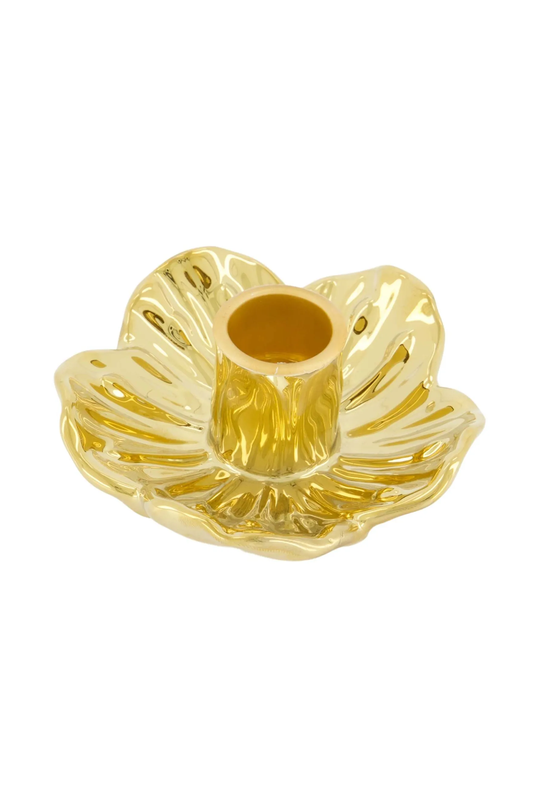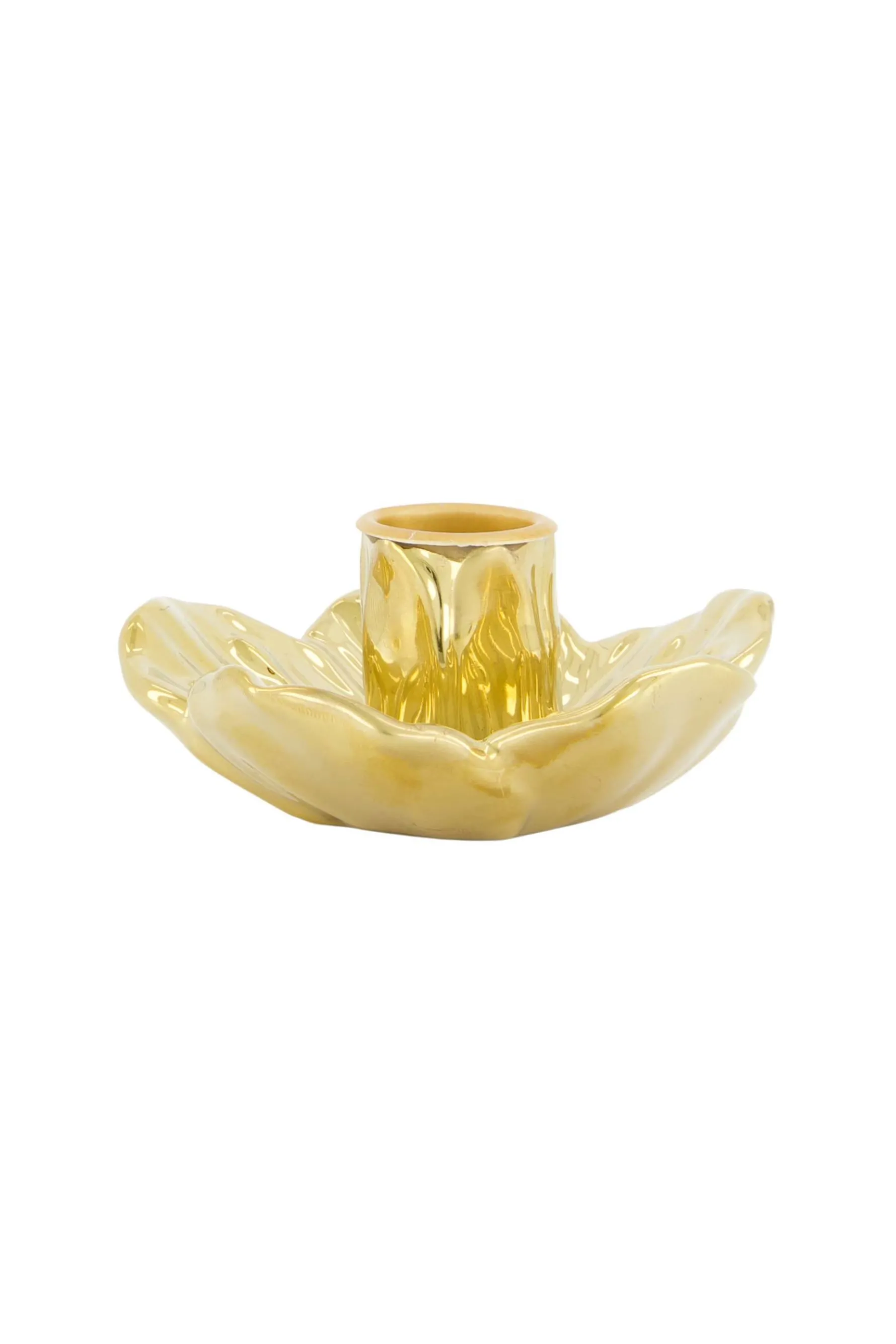 Zusss keramieken kandelaar bloem goud|In deze kandelaar van Zusss kun je de leukste kaarsen branden. Deze kandelaar is gemaakt van keramiek en heeft een ronden bloemvorm. Dit item is goudkleurig, lekker sjiek! In deze kandelaar passen de rustieke Zusss kaarsen van 12cm en 20cm, en de geribbelde Zusss kaarsen van 20cm. De kandelaar is 9,5x4cm groot. Ook erg leuk te combineren met andere Zusss kaarsenhouders of een leuke vaas!|Zusss: basic, stoer, uniek en een tikkeltje eigenwijs.