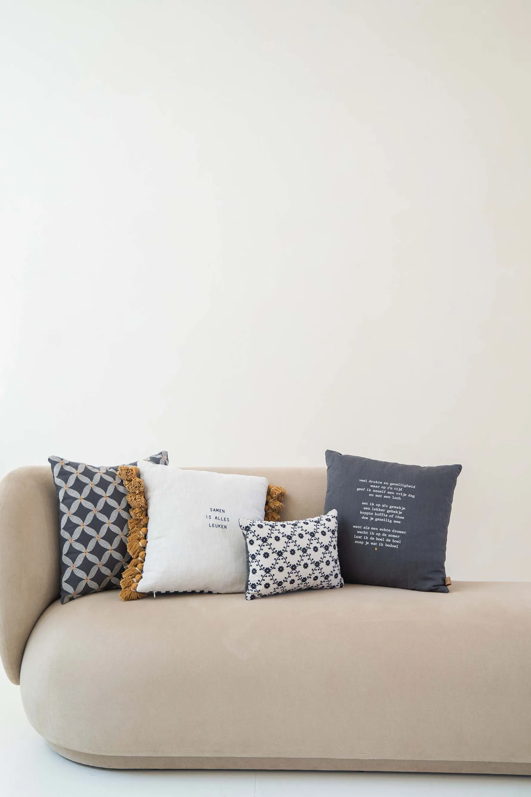 Zusss kussen grafisch patroon 45x45cm antracietgrijs|Dit sjieke kussen van Zusss is perfect voor jouw bank. Wat een toffe print! Het kussen is antracietgrijs van kleur. Dit vierkante kussen heeft op de voorkant een grafisch gewoven patroon. Combineer ‘m bijvoorbeeld met een lichtere variant. Dit kussen is gemaakt van 100% katoen. Het kussen heeft een formaat van 45x45cm. Het Zusss logo vind je terug op het PU labeltje aan de zijkant van het kussen. Vergeet niet een kijkje te nemen bij de Zusss kussens. Welke match jij met elkaar?|Zusss: basic, stoer, uniek en een tikkeltje eigenwijs.