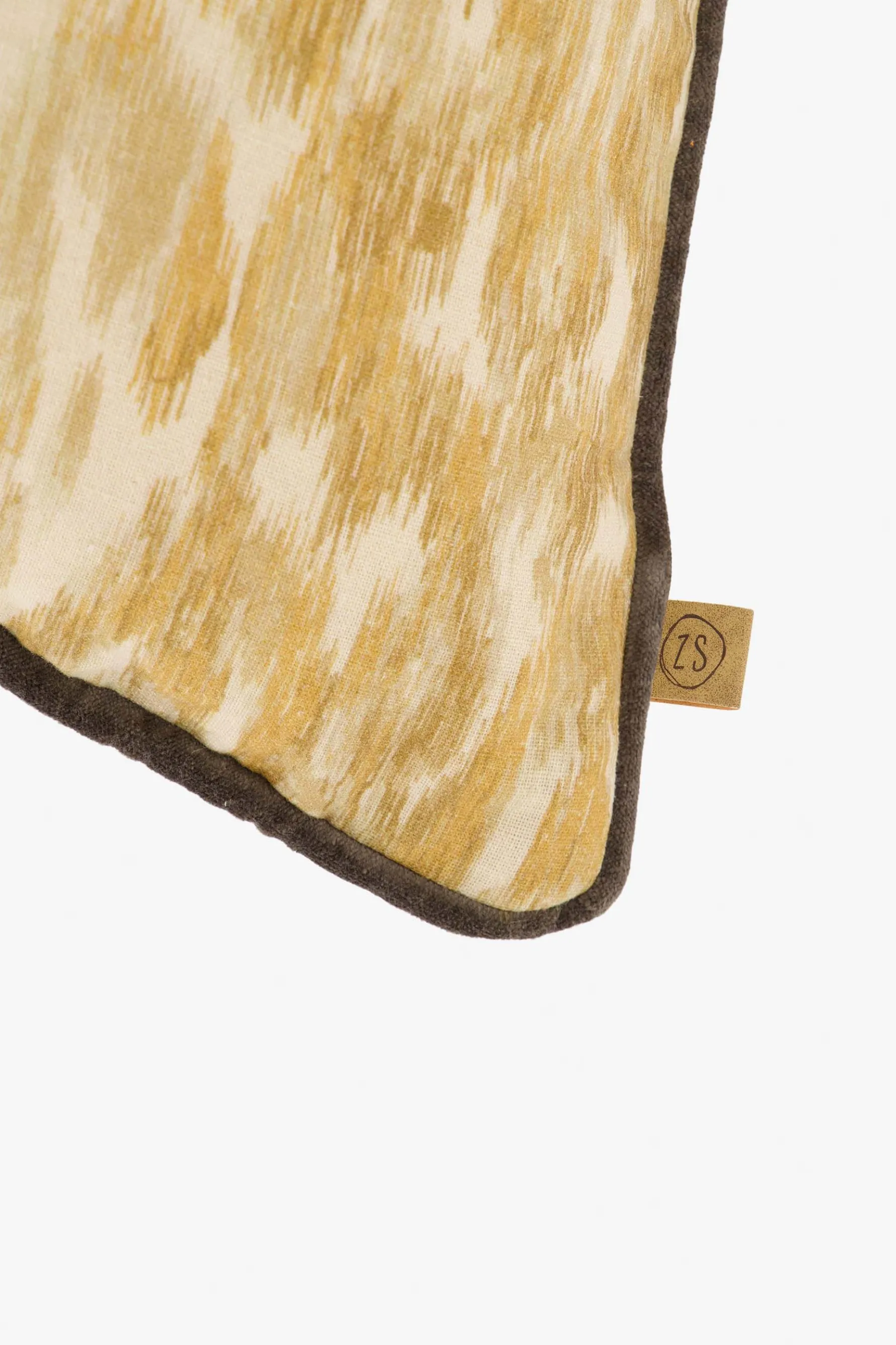 Zusss kussen ikat print 45x45cm oker/ecru|Dit sjieke kussen van Zusss is perfect voor jouw bank. Wat een toffe print! Het kussen is okerkleurig en heeft op de voorkant een ikat print met oker en goud. Het kussen is gemaakt van 95% linnen en 5 % katoen. Het Zusss logo vind je terug op het PU labeltje aan de zijkant. Het formaat van het kussen is 45×45 centimeter. Neem ook zeker een kijkje bij de andere Zusss kussens ! Welke match jij met elkaar?|Zusss: basic, stoer, uniek en een tikkeltje eigenwijs.