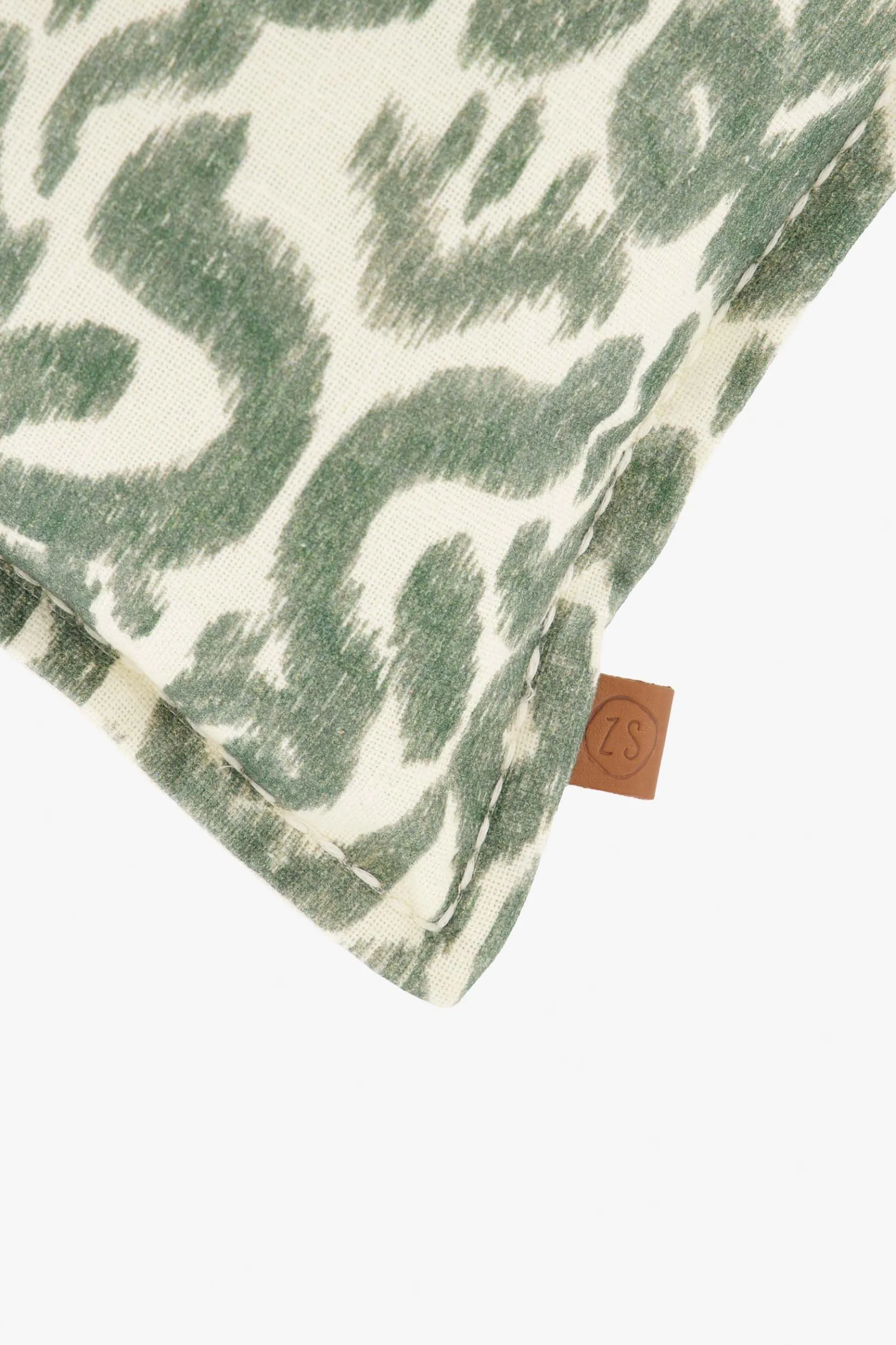Zusss kussen ornament print en madeliefje 50x30cm saliegroen/ecru|Dit leuke kussen van Zusss heeft twee verschillende kanten. Zo kun je lekker afwisselen! Op de voorkant van dit fijne kussen staat een mooie print in de kleuren saliegroen en ecru. Op de achterkant van het ecru kleurige kussen staat een subtiel madeliefje geborduurd. Het kussen is gemaakt van 100% katoen. Het Zusss logo vind je terug op het PU labeltje aan de zijkant. Het formaat van het kussen is 50×30 centimeter. Neem ook een kijkje bij de andere Zusss kussens ! Welke kussens geven jou een glimlach op je gezicht?|Zusss: basic, stoer, uniek en een tikkeltje eigenwijs.