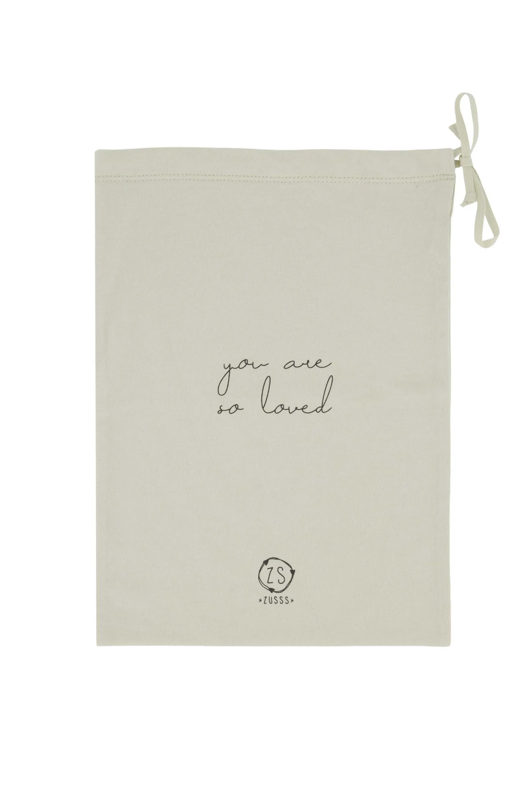 Zusss rompertje met de tekst you are so loved|Op dit rompertje van Zusss staat in sierlijke letters de tekst: you are so loved. En zeg nou zelf, van zo’n kleintje moet je toch ook gewoon houden?! Het rompertje is mouwloos en zandkleurig. Je maakt hem dicht met de drie knoopjes onderaan. Het rompertje is gemaakt van 95% katoen en 5% elastaan. Je kunt deze op 40 graden wassen met soortgelijke kleuren. Tip: was en strijk het rompertje binnenstebuiten. Het Zusss logo kun je terugvinden op een labeltje wat aan de zijkant is bevestigd. Het rompertje is verkrijgbaar in drie maten en je ontvangt deze in een katoenen zakje in dezelfde kleur en met dezelfde tekst als de romper. Neem eens een kijkje in de babycollectie voor meer items met deze lieve quote erop.|Zusss: basic, stoer, uniek en een tikkeltje eigenwijs.