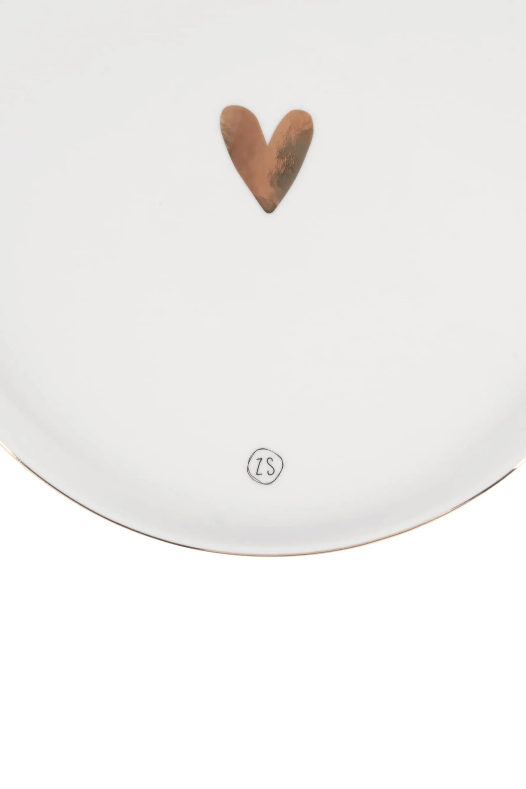 Zusss ontbijtbord met goud hartje en randje|Ontbijtbordje van Zusss met een goud hartje en een gouden randje. Kenmerkend van goud geglazuurd servies is dat dit niet in de vaatwasser kan, vandaar dat je dit bordje ook met de hand af moet wassen. Het bord is gemaakt van aardewerk en is 22cm breed en 1,5cm dik. Op de voorkant van het bord vind je ook een subtiel Zusss logo. Leuk om deze borden te combineren met andere aardewerk items met gouden hartjes. Je bekijkt ze in de categorie servies.|Zusss: basic, stoer, uniek en een tikkeltje eigenwijs.