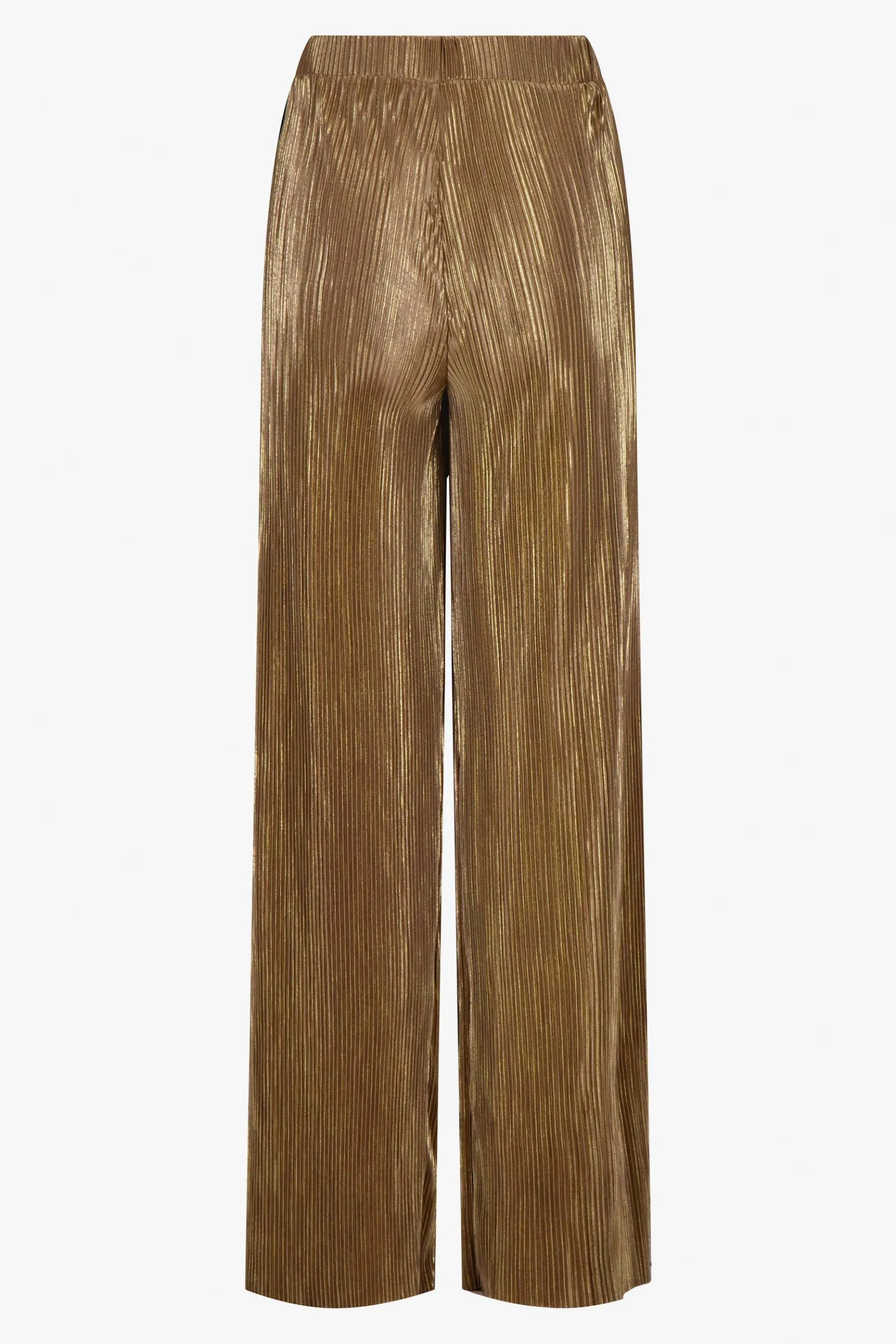 Zusss plisse broek champagne goud|In deze broek van Zusss straal je! Deze lange broek is champagne goud van kleur, lekker sjiek! Combineer ´m met een sjieke top in dezelfde kleur of een comfy trui! Met deze broek is alles mogelijk. Deze plisse broek is gemaakt van 100% polyamide. Kijk ook eens bij de Zusss mooimakersom je outfit af te maken.|Zusss: basic, stoer, uniek en een tikkeltje eigenwijs.