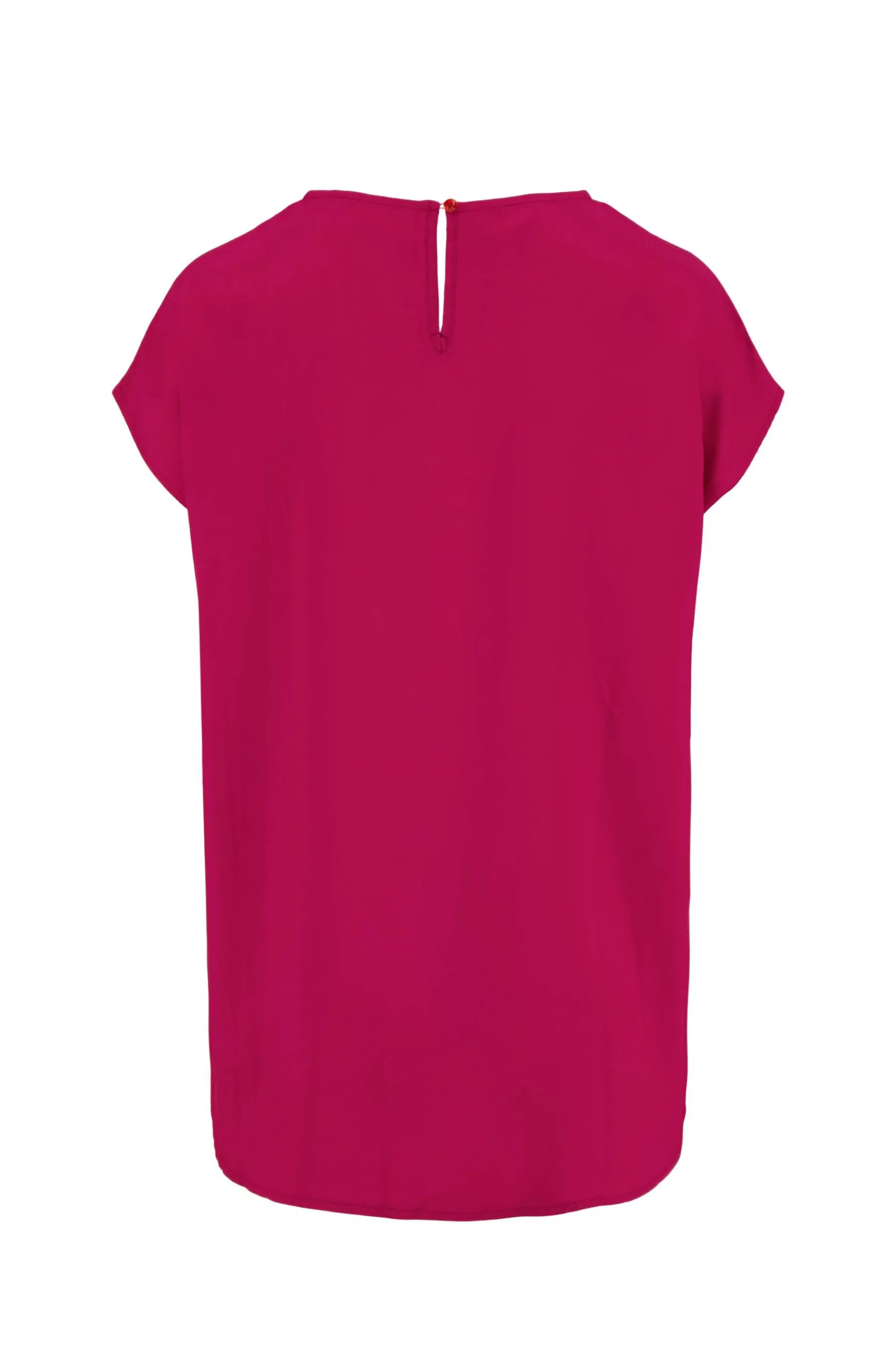 Zusss satijnen twill top met boothals roze rood|Hey leukerd! Deze mooie Zusss top van is zooo fijn! De satijnen twill top heeft een mooie roze rode kleur. Je draagt ´m bijvoorbeeld op een fijne broek of twill rok van Zusss. De top heeft korte mouwen en een boothals. Leuke details zijn het borstzakje aan de linkerkant en de knoopsluiting bij de nek. Dit item is gemaakt van 52% viscose en 48% tencel. Neem ook eens een kijkje bij de Zusss mooimakers. Welke items match jij met je nieuwe Zusss kleding?|Zusss: basic, stoer, uniek en een tikkeltje eigenwijs.