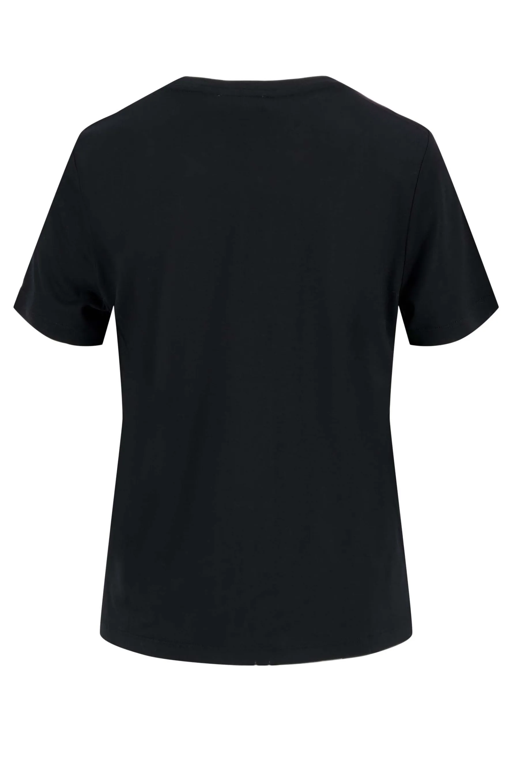 Zwart basic t-shirt| Zwart t-shirt van Zusss met een ronde hals. Gemaakt van heerlijk zacht, duurzaam materiaal. Een t-shirt met een lyocel en polyester combinatie. Shop dit fijne t-shirt in drie verschillende kleuren. Leuk te combineren op een rok of een broek. En is het wat kouder buiten? Trek dan een fijn vest over het t-shirt aan. Het shirt heeft een ademende stof, dat zorgt voor extra draagcomfort. Was het shirt op 30 graden, al heeft handwassen wel de voorkeur. Als je het shirt uithangt na het wassen, hoef je het in de meeste gevallen niet te strijken. Wil je dit toch doen, strijk het t-shirt dan binnenstebuiten.|Zusss: basic, stoer, uniek en een tikkeltje eigenwijs.