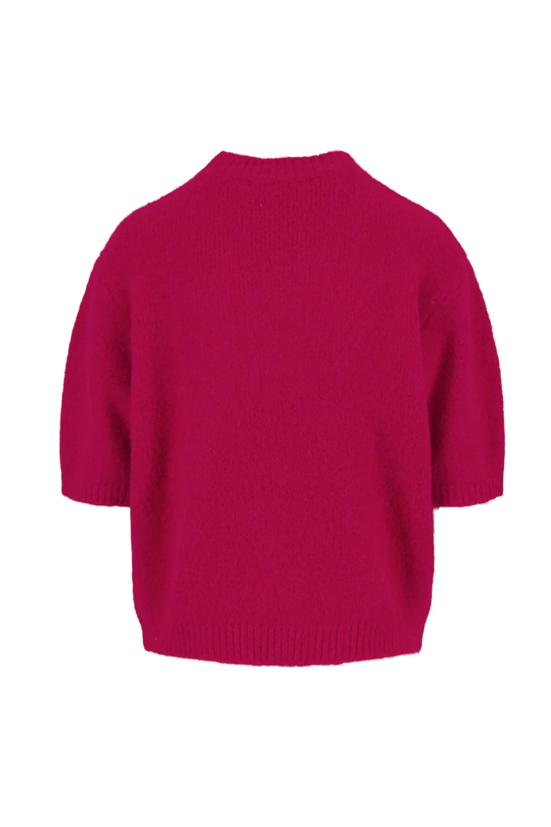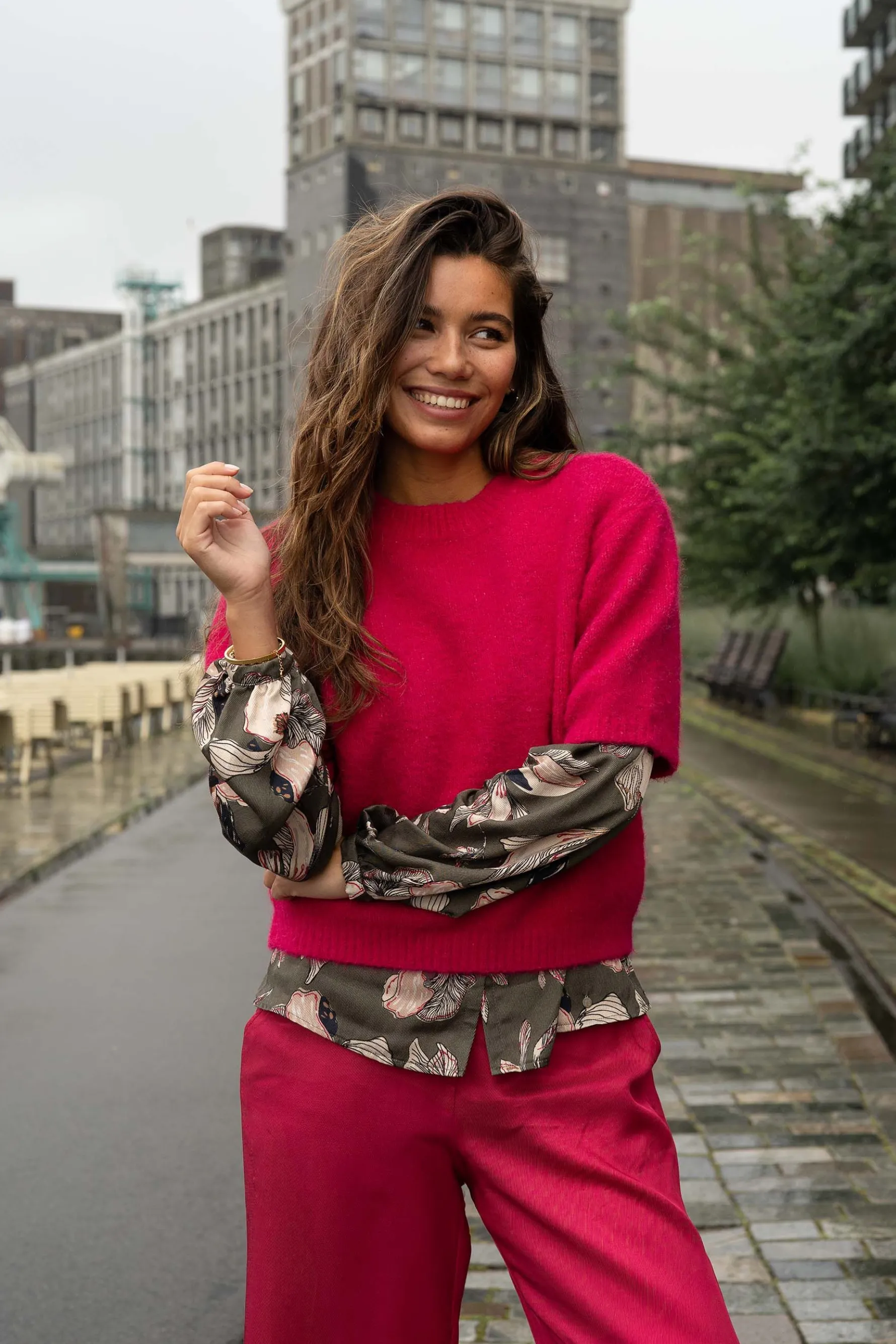 Zusss trui met boothals roze rood|Een zachte gebreide trui van Zusss! Met deze roze rode trui kun je alle kanten op. Of je nu een dagje op kantoor hebt of een diner. Je draagt ‘m bijvoorbeeld op een sjieke broek of jeans van Zusss. Dit item is gemaakt van 100% polyester waarvan 49% gerecyceld is. Neem ook eens een kijkje bij de andere Zusss kleding. Welke items combineer jij met deze trui?|Zusss: basic, stoer, uniek en een tikkeltje eigenwijs.