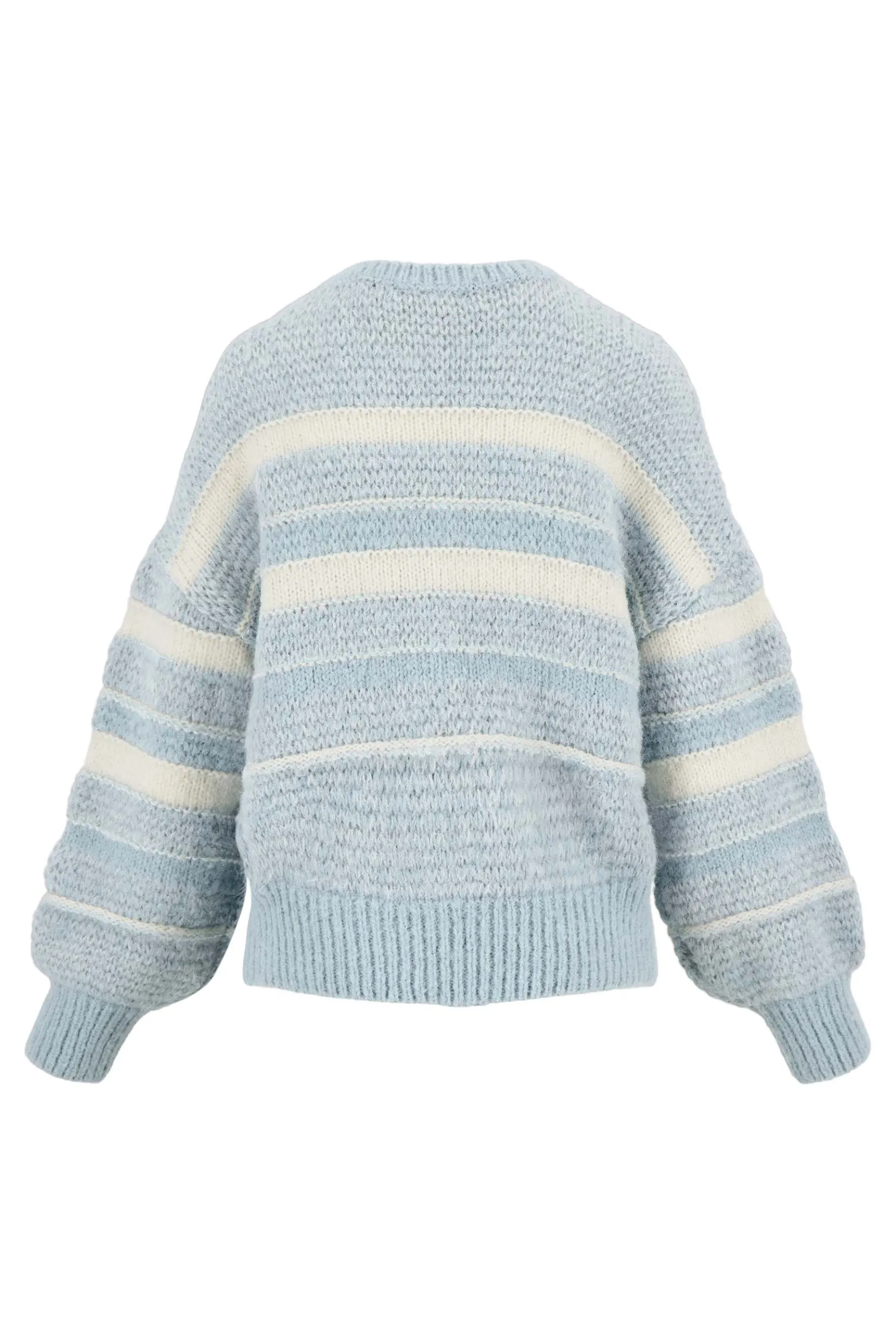 Zusss trui met streep blauwgrijs|Deze trui van Zusss zit zoo comfortabel! Deze zachte trui is blauw van kleur en met daarin lichtere strepen. De ballonmouwen van deze trui zorgen voor een stijlvolle uitstraling. Deze trui houdt jou heerlijk warm als het buiten wat kouder wordt. Je draagt ‘m bijvoorbeeld op een mooie Zusss jeans. Dit item is gemaakt van 100% polyester waarvan 57% gerecycled is. Neem ook eens een kijkje bij de Zusss tassen. Welke matcht bij jouw nieuwe outfit?|Zusss: basic, stoer, uniek en een tikkeltje eigenwijs.