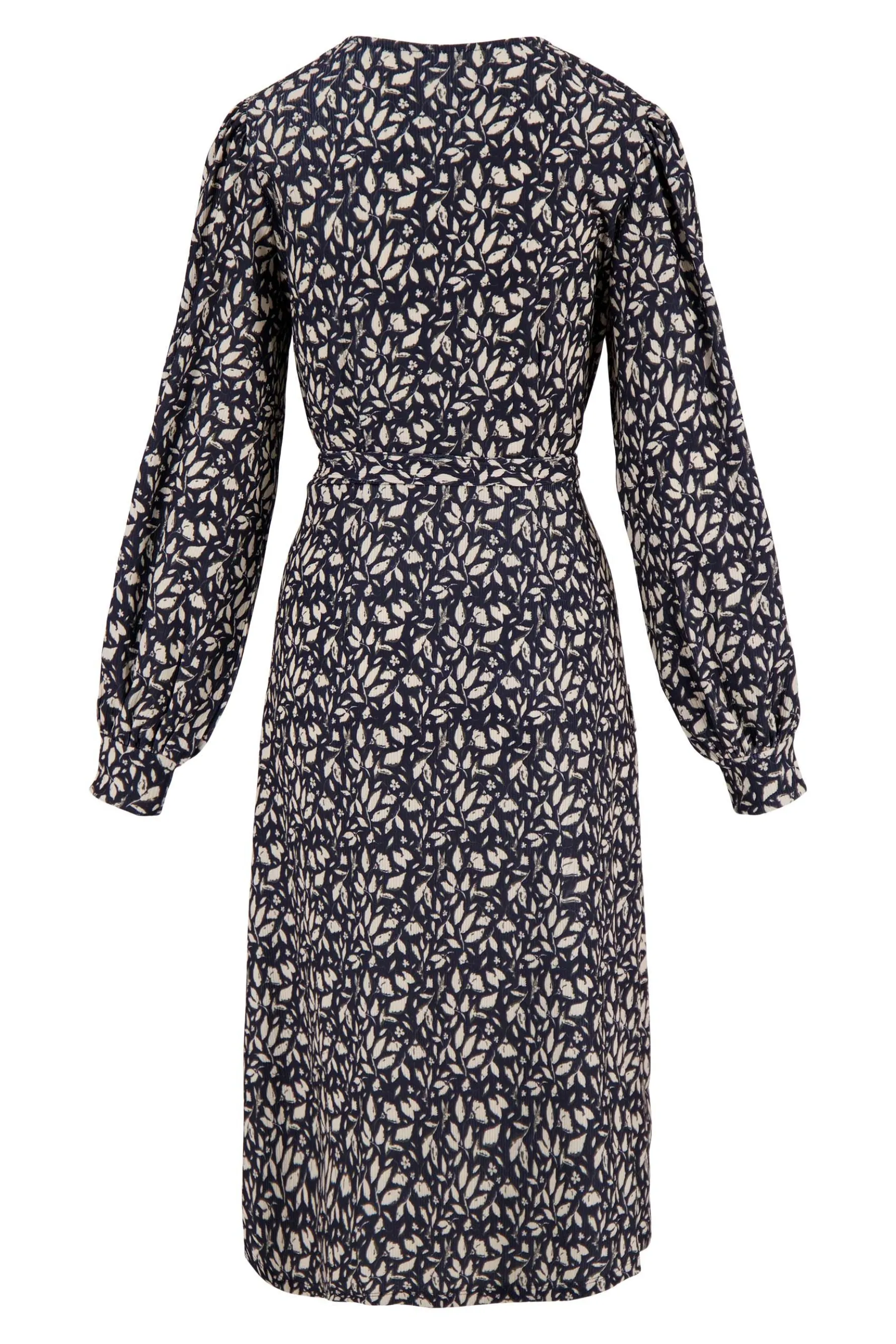Zusss wikkeljurk met blaadjesprint donkerblauw|Prachtige wikkeljurk van Zusss met all-over print. Deze donkerblauwe jurk heeft een fijne pasvorm met een wikkel. De jurk heeft een V-hals en lange mouwen. Ben jij weg van het design op deze jurk? Bekijk dan ook de andere Zusss kleding met deze blaadjesprint. De jurk is gemaakt van 98% polyester en 2% elastaan. Neem ook eens een kijkje bij de Zusss tassen. Welke match jij bij deze leuke Zusss jurk?|Zusss: basic, stoer, uniek en een tikkeltje eigenwijs.