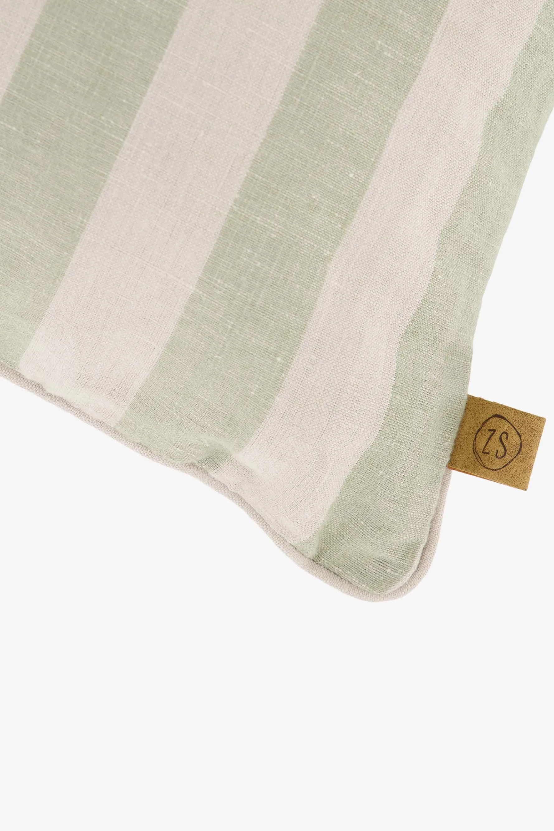 Zusss kussen strepen 60x40cm zand/saliegroen|Met dit gestreepte kussen van Zusss haal je het voorjaar in huis. De voorkant van dit vrolijke kussen is saliegroen en zand gestreept. De achterkant is zandkleurig. Het kussen is gemaakt van 75% katoen, 23% linnen en 2% lurex. Het Zusss logo vind je terug op het PU labeltje aan de zijkant. Met welke Zusss kussens match jij dit kussen?|Zusss: basic, stoer, uniek en een tikkeltje eigenwijs.